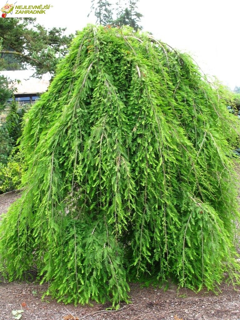 Roubovaný na kmínku 100 převislý. Prodáváme ve velkém kontejneru 10 litrů čtyř leté rostliny. Pěstujte tisovce přednostně na vlhkém nebo vyloženě mokrém stanovišti, v kyselé půdě a na plném slunci, nebo v mírném polostínu. Pokud rostlině žloutnou listy, je to následek chlorózy, příliš vápenitá zem. Dobře zakořeněné rostliny vyššího vzrůstu, pokud rostou ve vyloženě mokré zemi, si časem vytvoří dýchací (vzdušné) kořeny, které vypadají jako obrácené trychtýře a vystupují nad povrch mokré půdy. Neodstraňovat. Stříhání zakrslých odrůd doporučujeme na jaře před rašením, převislé druhy můžete krátit rovněž z jara, nebo tvarovat pro hustější olistění na začátku léta. Plně mrazuvzdorný.